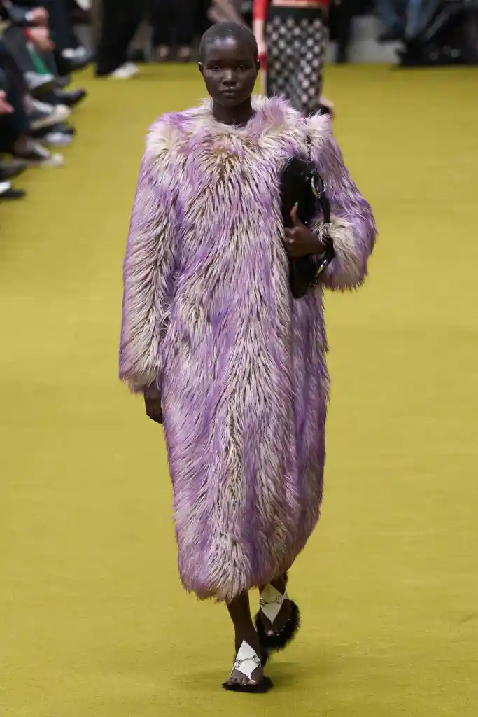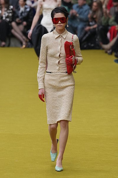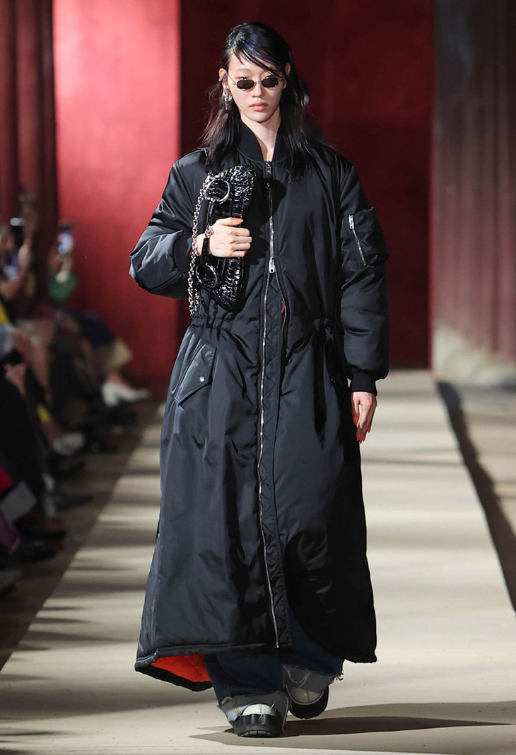 تلاقت نغمات إبداعية حول النماذج الرجالية وأرشيف الدار على المدرج الدائري في مركز غوتشي. تمتزج الخياطة الفخمة بشكل متناغم مع ملابس الدراجات النارية والملابس الرياضية التي تعود إلى أوائل العقد الأول من القرن الحادي والعشرين. كانت السترات كبيرة الحجم، والمعاطف تلامس الأرض. تحولت الإنشاءات الكلاسيكية من خلال الاختراعات العفوية، مثل البنطلونات إلى تنانير بطول الأرض تكشف عن حركة الساقين. لفتت البدلات ذات العناصر القابلة للفصل الانتباه إلى التفسير الفردي لكل من ترتديها، في حين تألق الترتر تحت الأضواء، مما أدى إلى تضخيم البراعة الحرفية في قلب الدار.