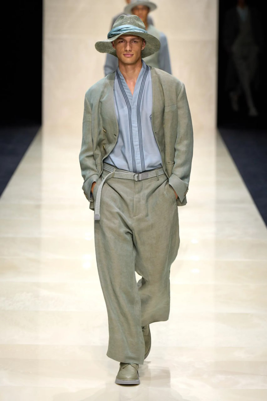 وأضاف البيان: "إنها خزانة أزياء متكاملة، تُبرز أفخم الأقمشة من خلال سترات وسراويل تتميز بالانسيابية، ضمن لوحة ألوان راقية تمزج بين الدرجات الطبيعية، والأزرق البحري العميق، والأسود الأنيق".