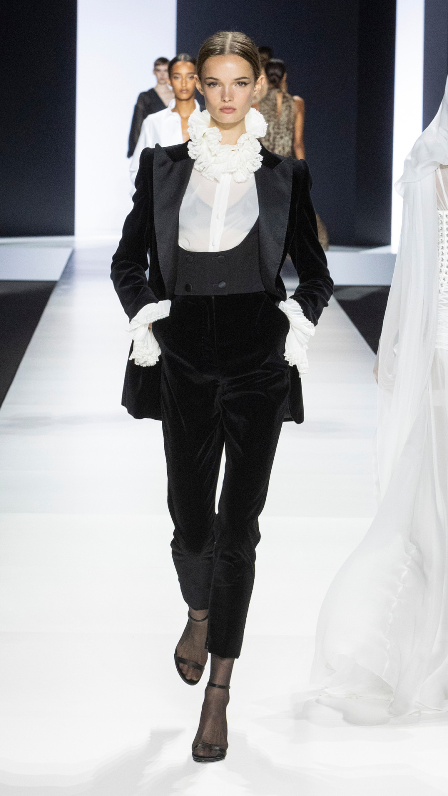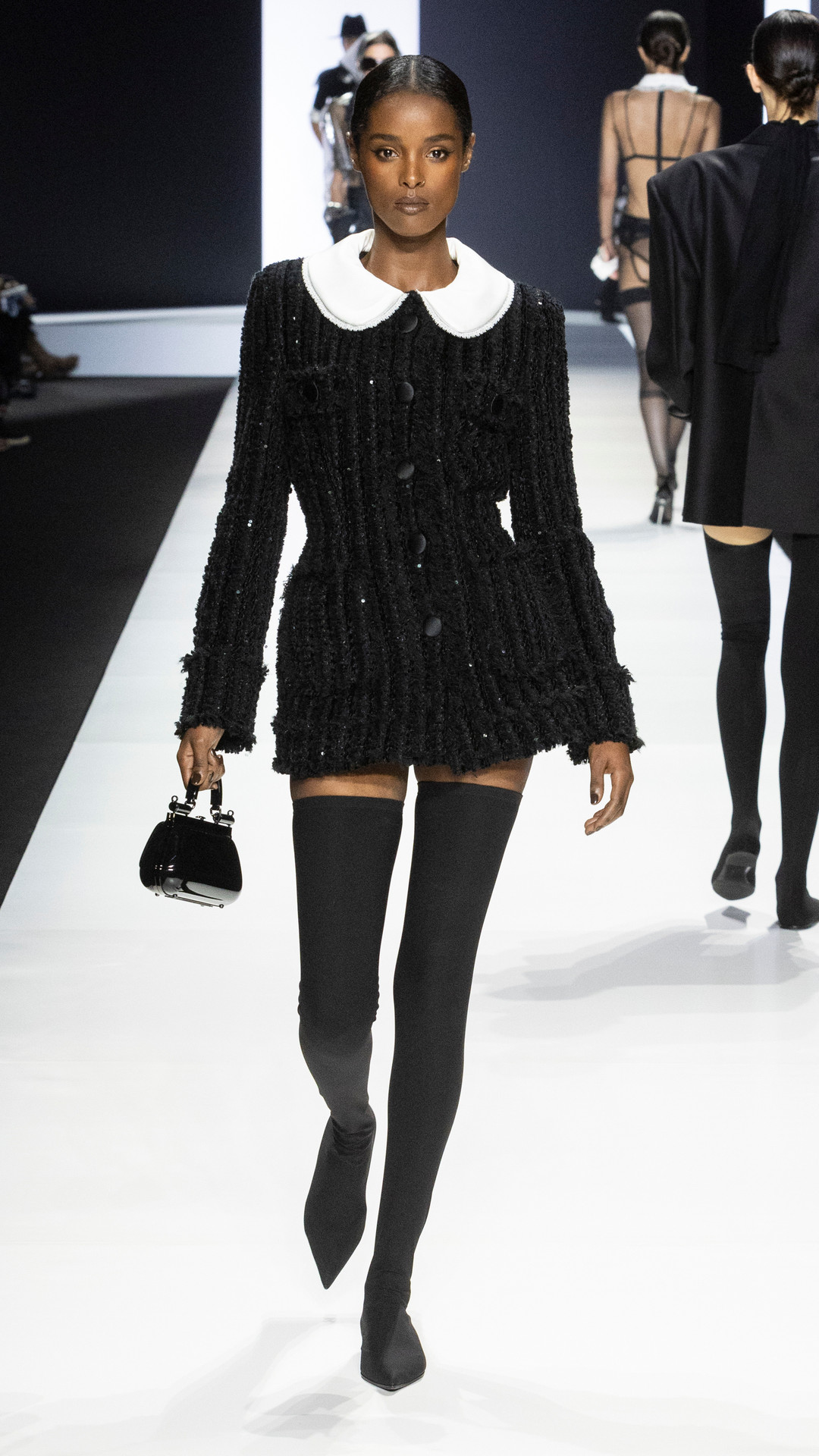 وبين الإطلالات المصقولة والأناقة الخالدة لأسلوب الستينيات، ومع تميز التفاعل الآسر بين اللونين الأسود والأبيض والأنسجة الفاخرة، وتوقيع دولتشي آند غابانا المُنقطع النظير ، تألقت بأزيائها المتفردة عندما تطل علينا لتخبرك بالحاضر ولمسة الماضي الغائب.
