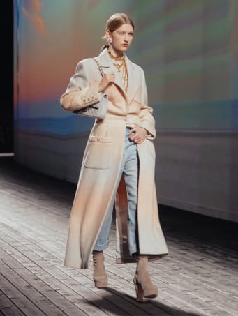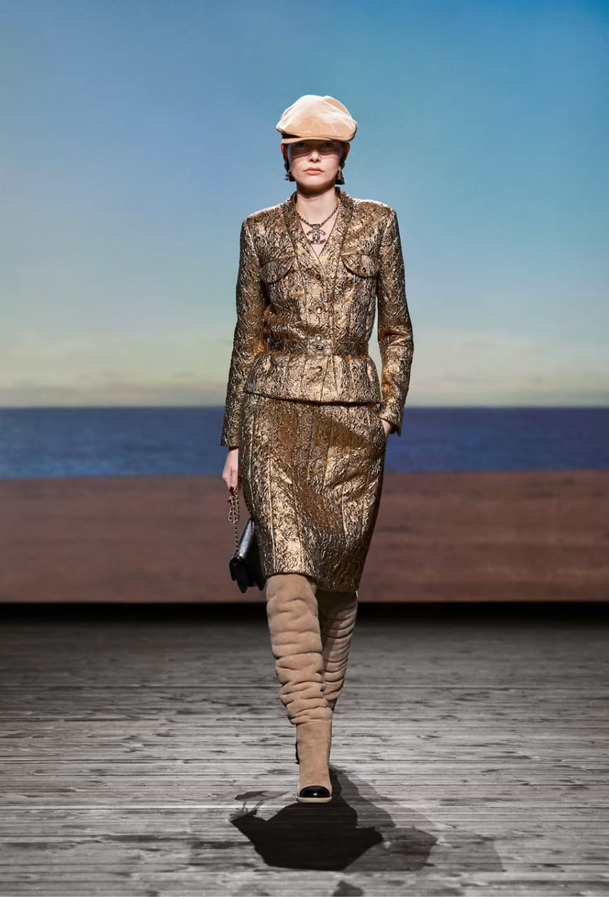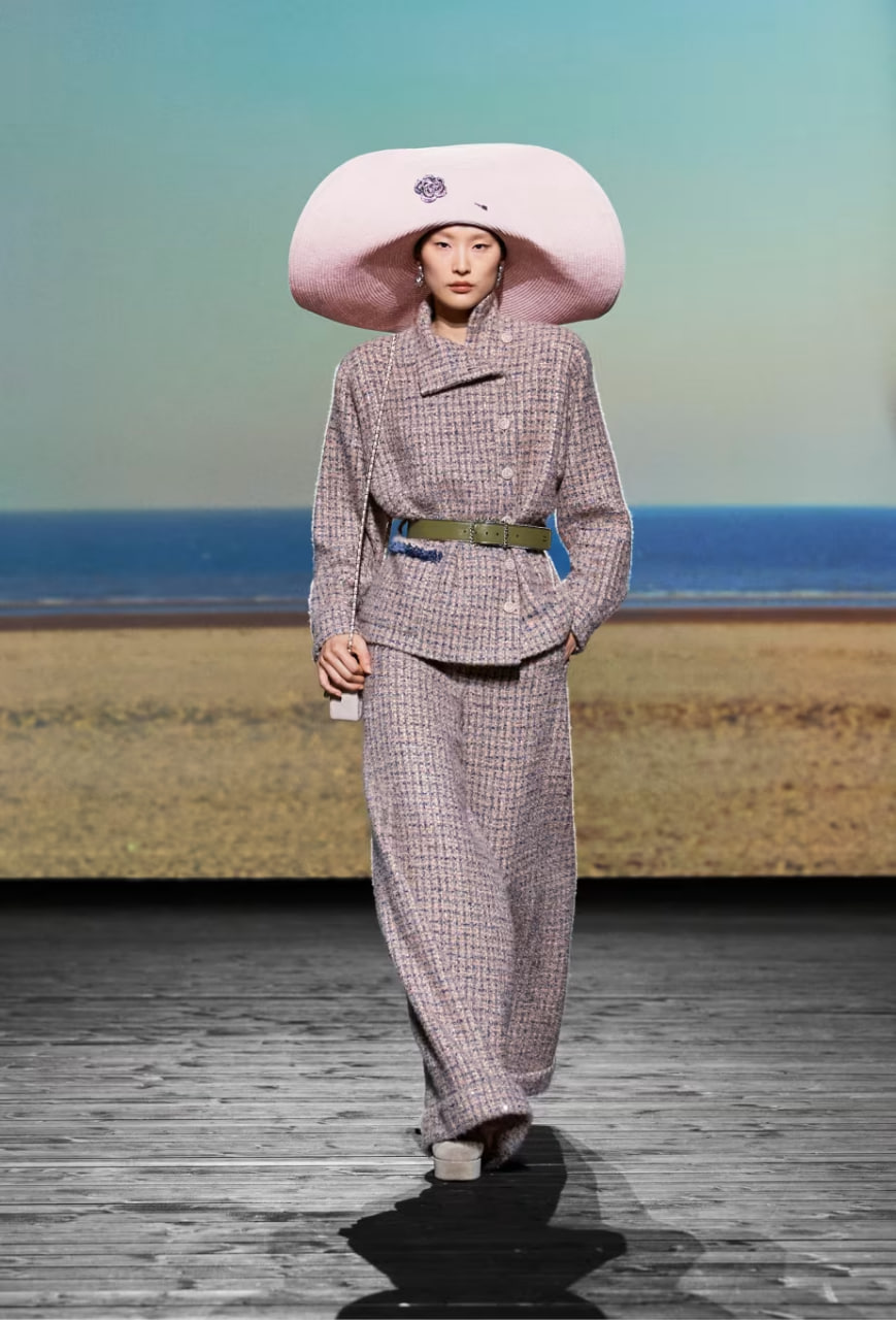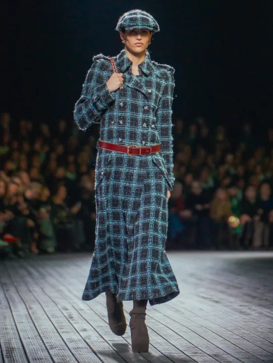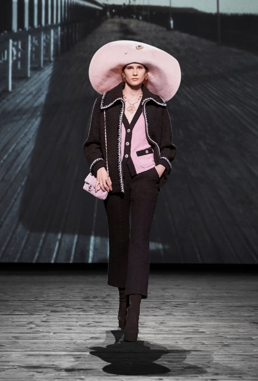 تميزت Chanel بمعاطف التويد الشهيرة ذات الأحزمة، والسترات الصوفية المريحة الخالدة لتصميمات «شانيل»، فضلاً عن الأقمشة المنسدلة، التي هيمنت على هذه المجموعة.