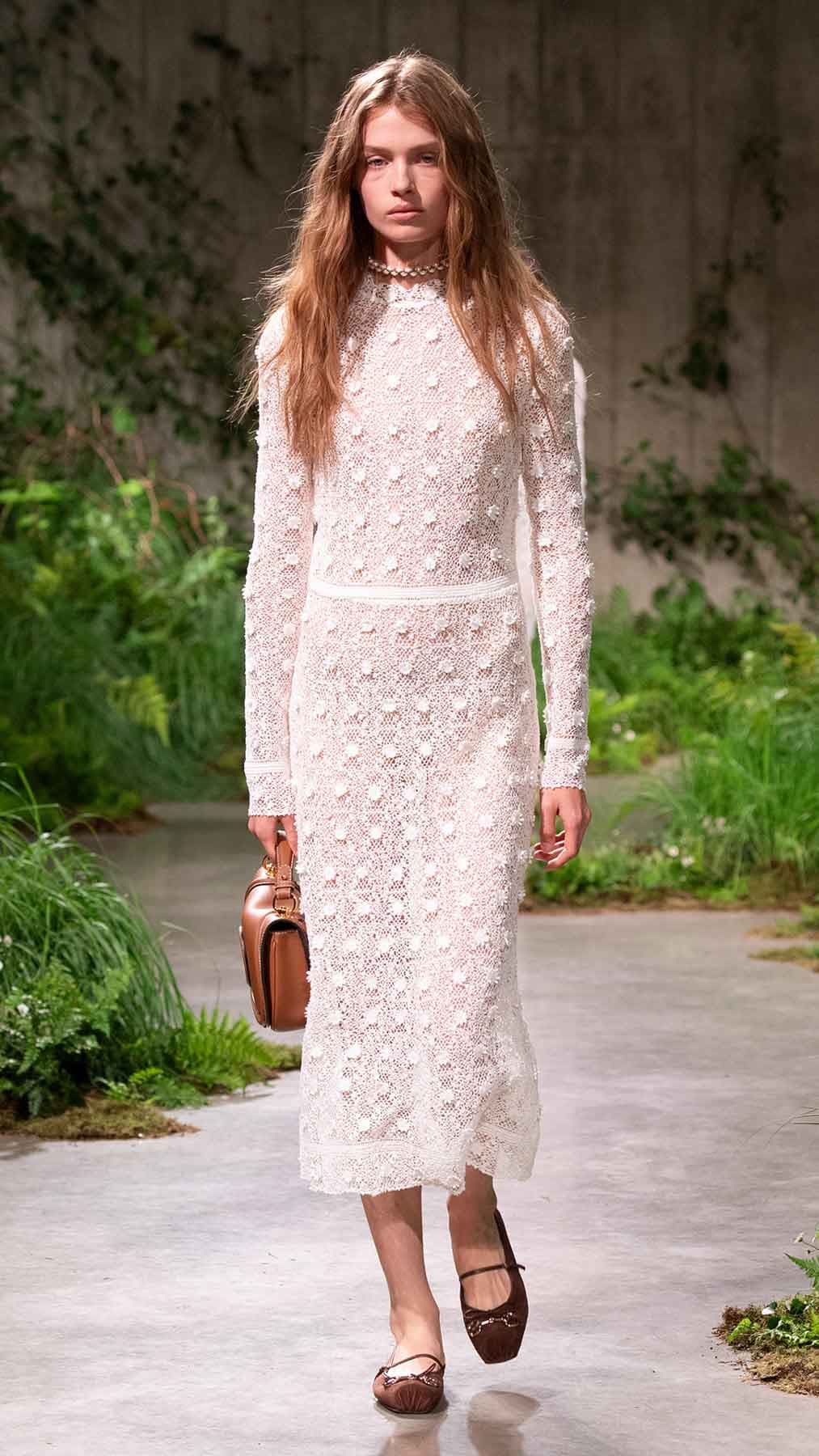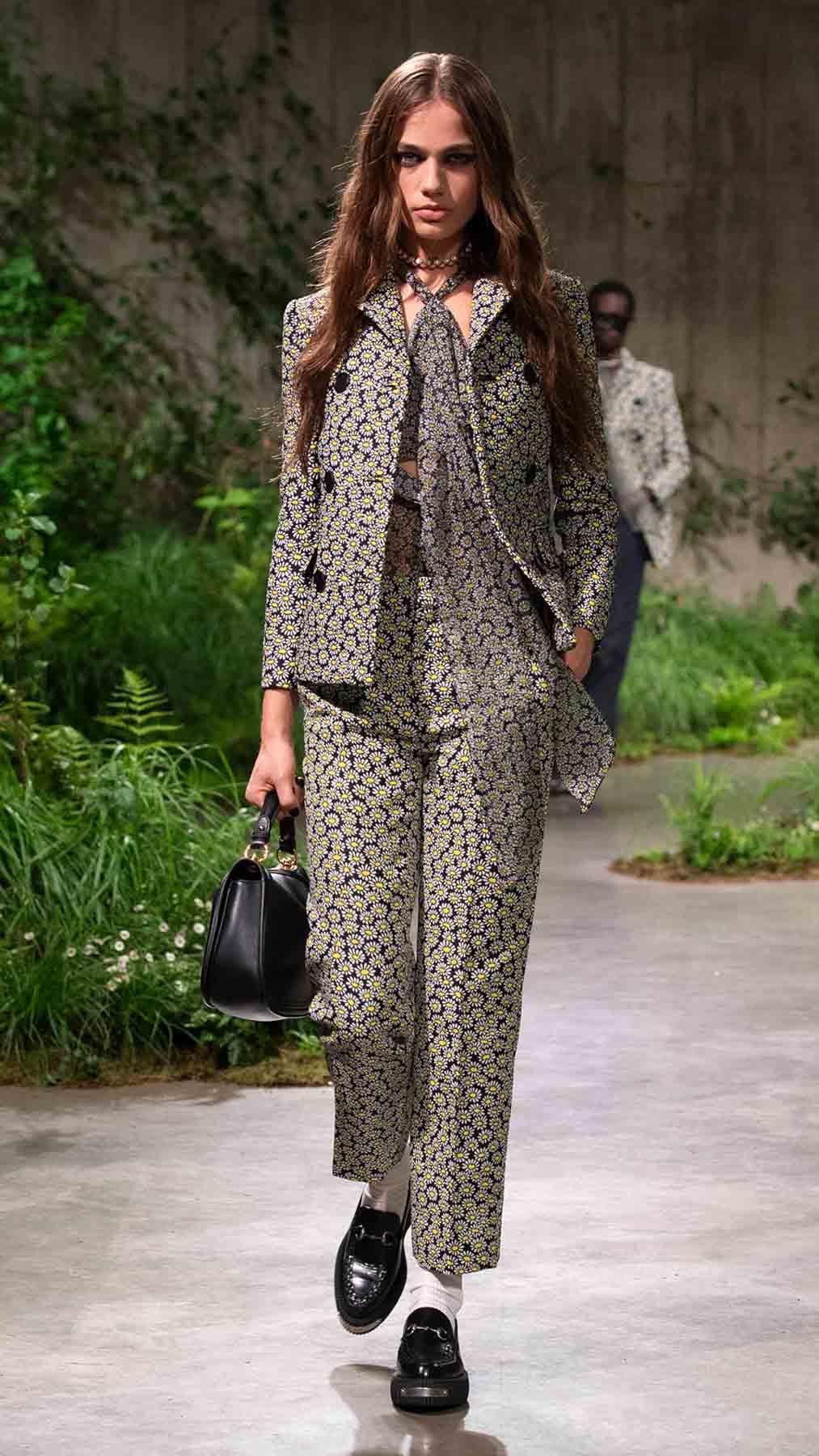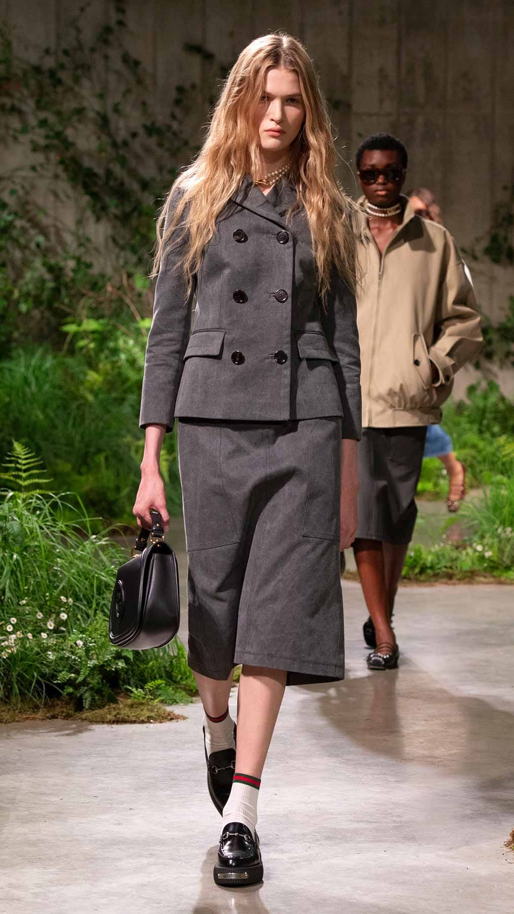بالملابس المنكّهة بلمسة كلاسيكية معاصرة، السترات، الألوان المُلفتة، التصاميم المستوحاة من اللانجري وغيرها الكثير، جسّد المدير الإبداعي Sabato De Sarno رؤيته في تقديم ملابس فاخرة وبلمسة جذّابة. من هنا، تفاصيل الدانتيل، الزخرفات الناعمة، القصّات القصيرة، فساتين اللانجري التي تُعرف بـSlip Dresses، كلّها عناصر برزت في هذه المجموعة. بالإضافة إلى ذلك، أخذت المعاطف بموديلات متعدّدة حصة من التشكيلة، تماماً مثل تلك الطويلة وتلك التي تصل إلى حدود الفخذين بخصر محدّد. هذا واتّسمت بعض اللوكات بأسلوب Ladylike، تماماً مثل الأطقم المؤلّفة من الشورتات القصيرة والسترات الهندسية، هذا إلى جانب الشورتات مع كنزات كارديغان وغيرها.