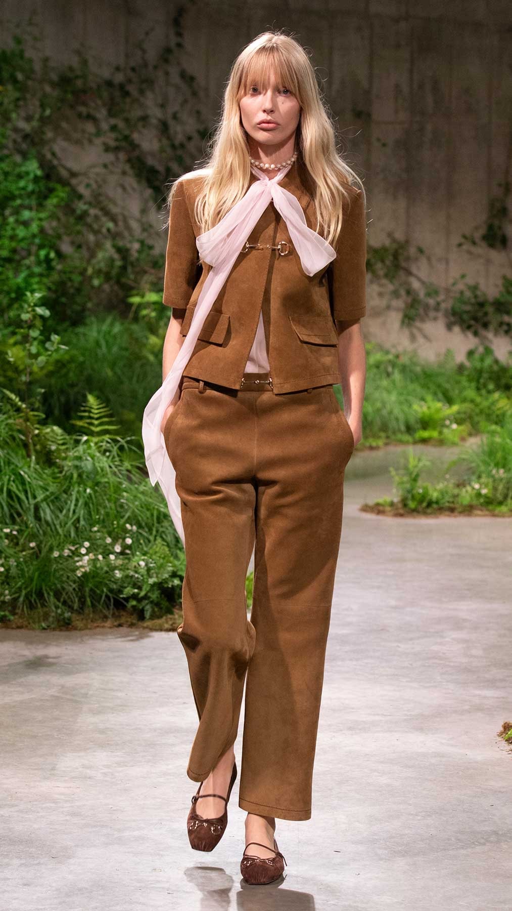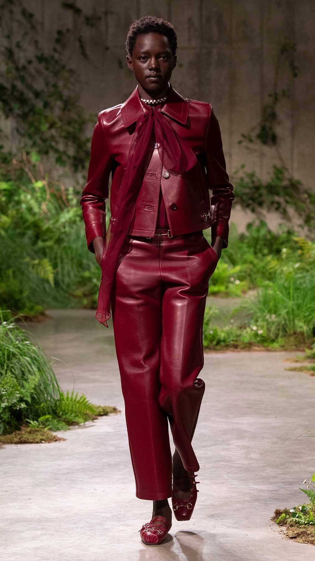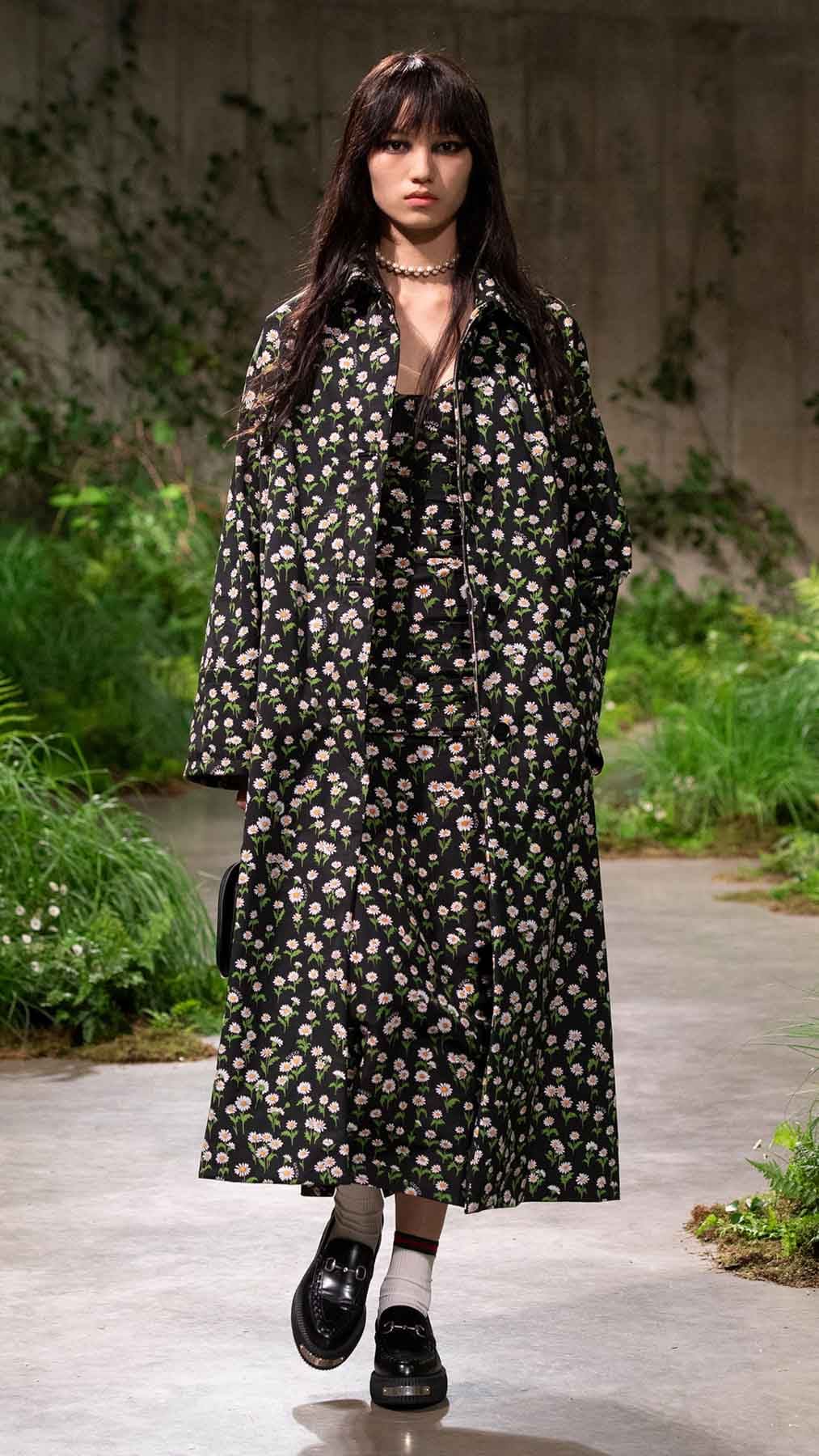 بالملابس المنكّهة بلمسة كلاسيكية معاصرة، السترات، الألوان المُلفتة، التصاميم المستوحاة من اللانجري وغيرها الكثير، جسّد المدير الإبداعي Sabato De Sarno رؤيته في تقديم ملابس فاخرة وبلمسة جذّابة. من هنا، تفاصيل الدانتيل، الزخرفات الناعمة، القصّات القصيرة، فساتين اللانجري التي تُعرف بـSlip Dresses، كلّها عناصر برزت في هذه المجموعة. بالإضافة إلى ذلك، أخذت المعاطف بموديلات متعدّدة حصة من التشكيلة، تماماً مثل تلك الطويلة وتلك التي تصل إلى حدود الفخذين بخصر محدّد. هذا واتّسمت بعض اللوكات بأسلوب Ladylike، تماماً مثل الأطقم المؤلّفة من الشورتات القصيرة والسترات الهندسية، هذا إلى جانب الشورتات مع كنزات كارديغان وغيرها.